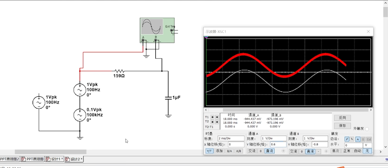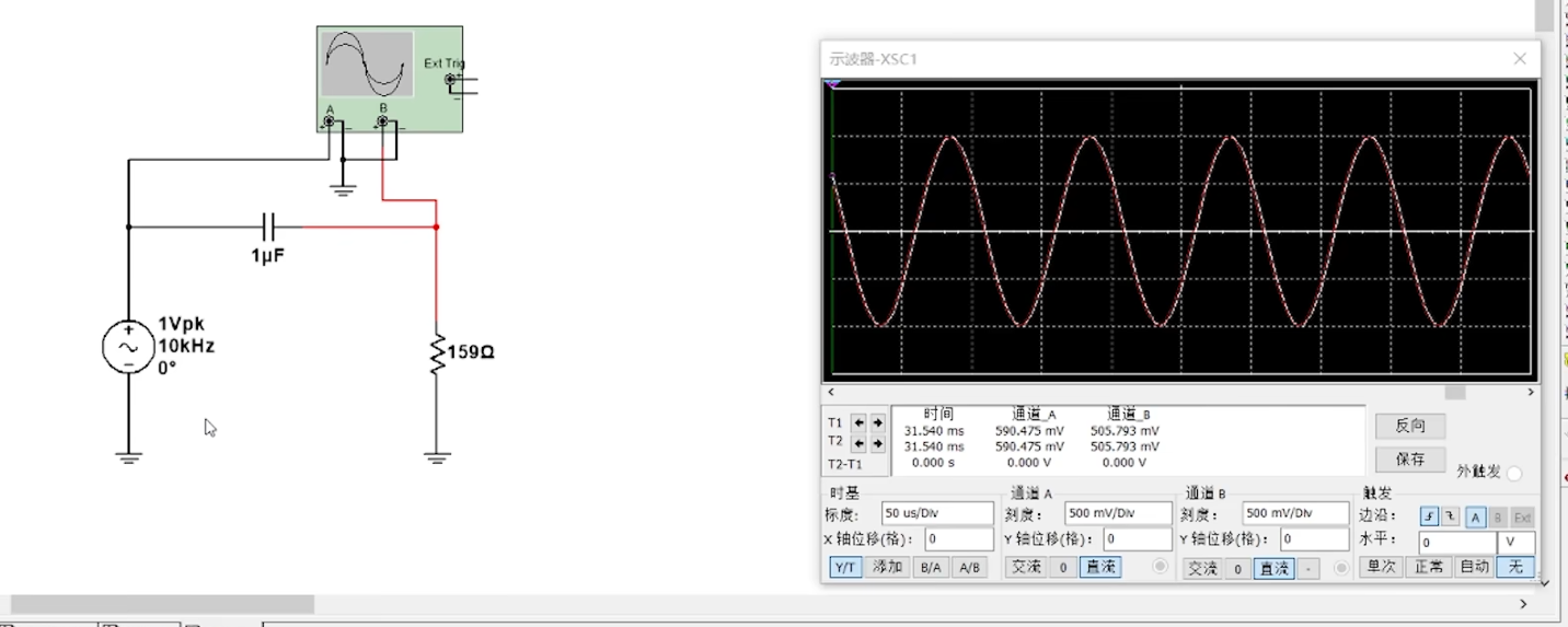 当输入信号的频率高于电容的截止频率时,输出会有衰减