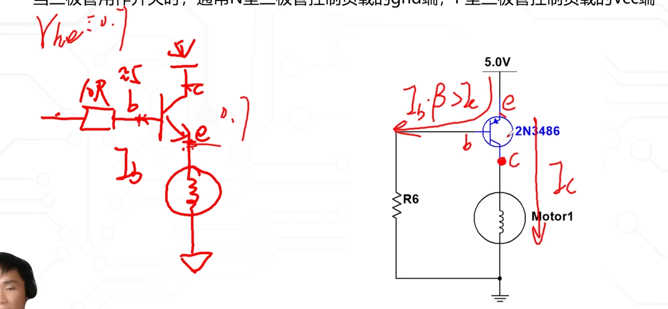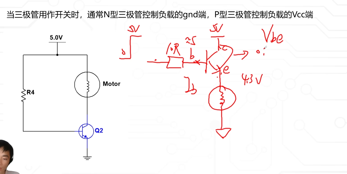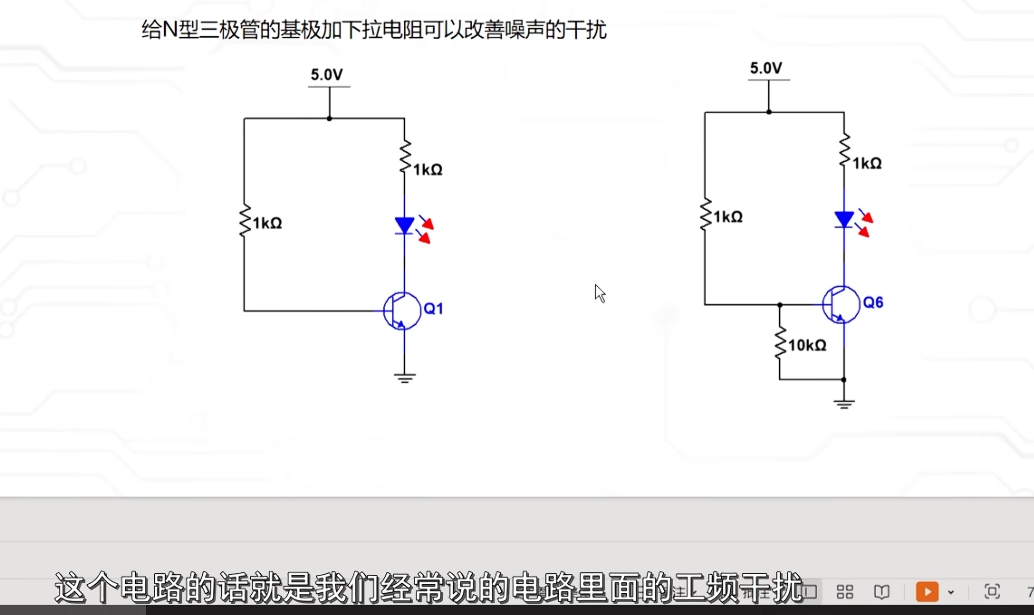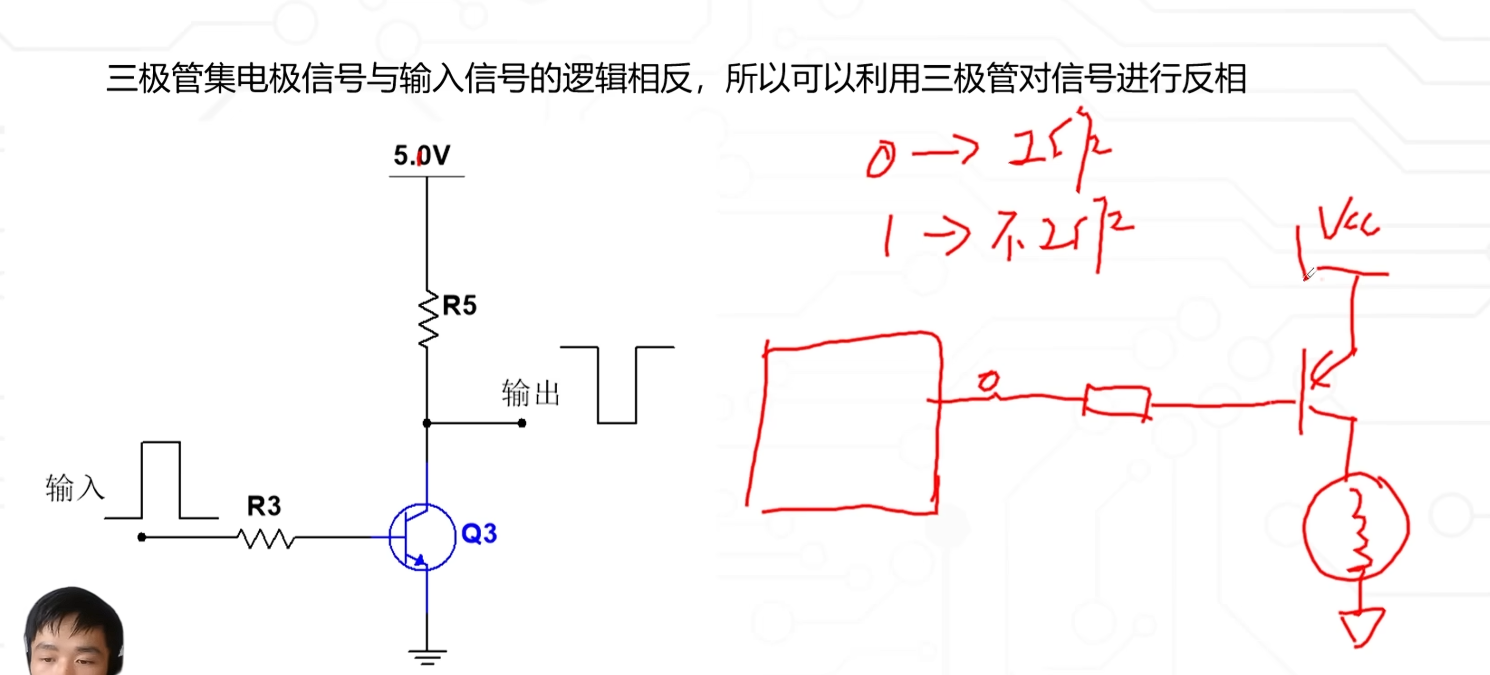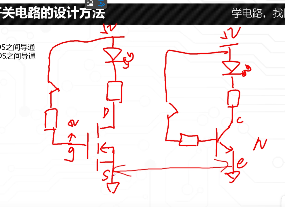 我们想让mcu控制元器件工作时,就必须在电路中添加电子开关(三极管)