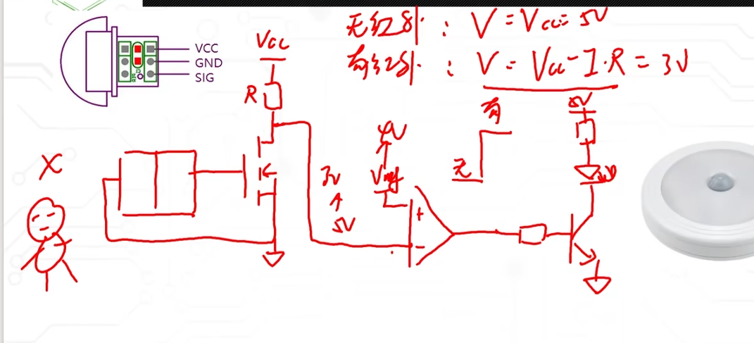 当光很暗的时候,阻值11k,V+于2.5 输出1