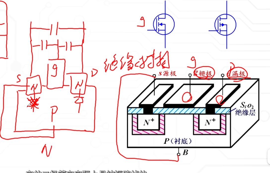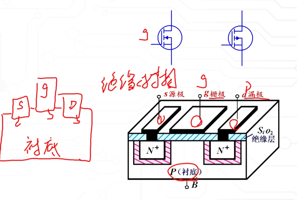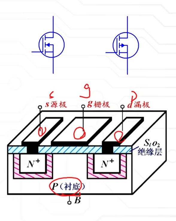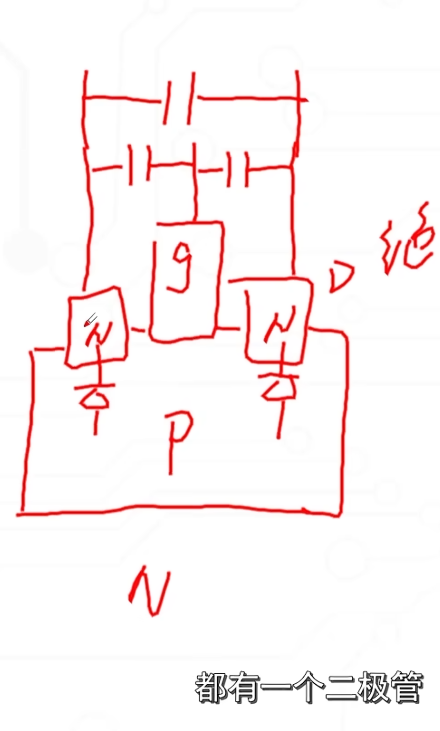 它源极漏极由N组成,衬底由P组成,所以可以看作存在两个二极管
