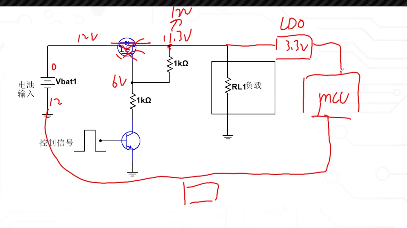 注意,此电路即使开关没有闭合,也可以通过寄生二极管供电