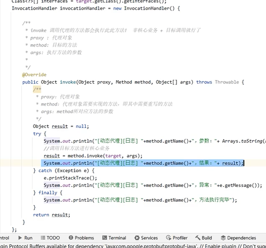 - 代理对象会拦截对原始对象的方法调用,并在调用前后执行额外的逻辑(如日志、事务等)。