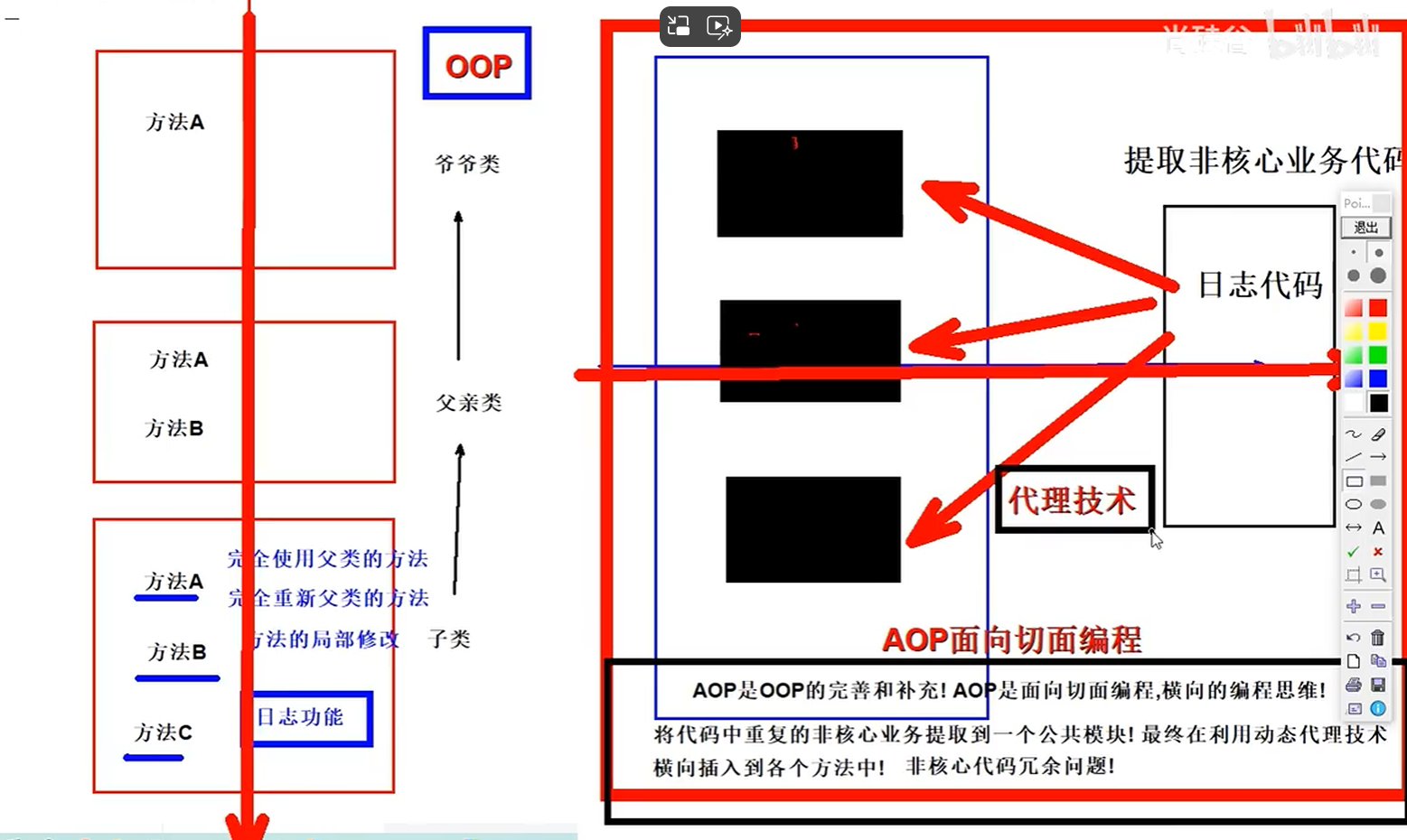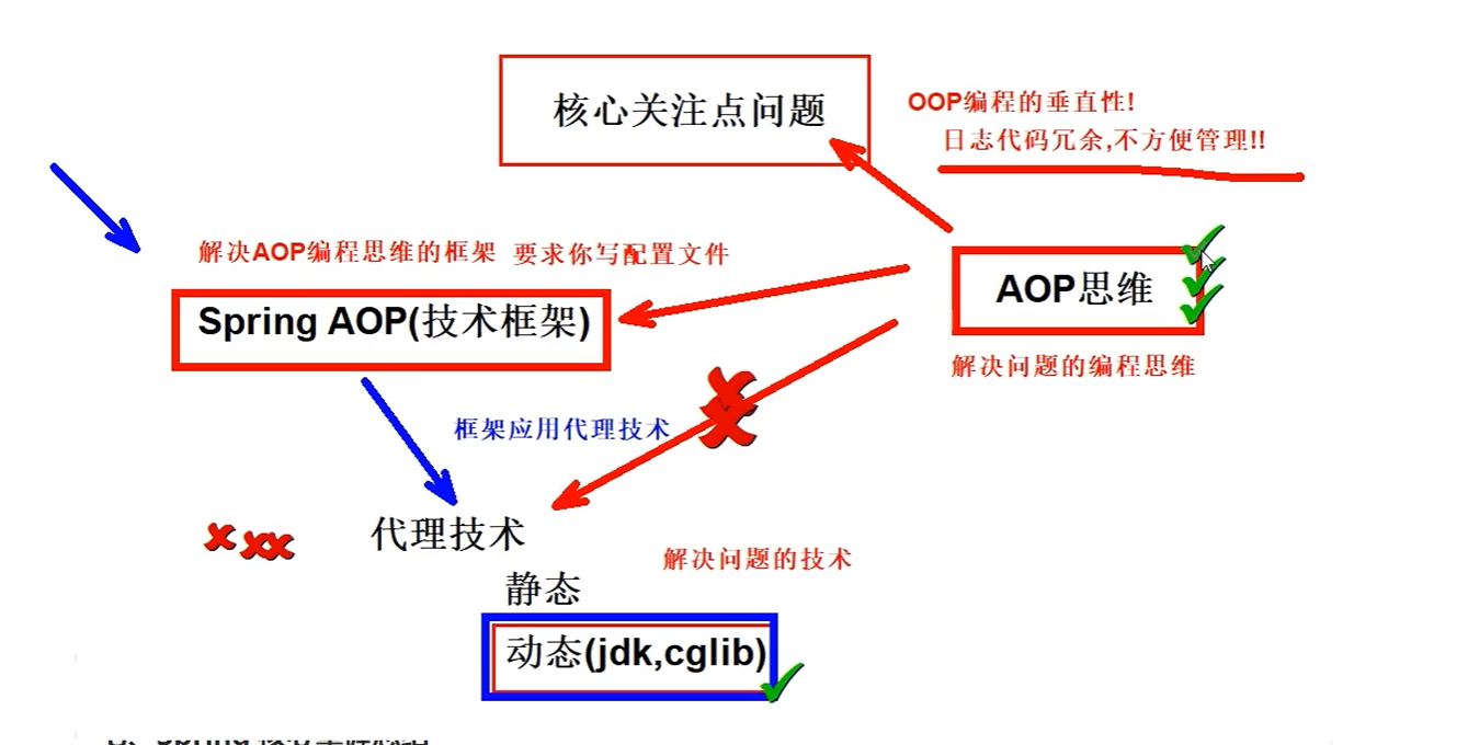 AOP是一种思想,为了解决散落在四处的非核心代码,提高项目的可维护性