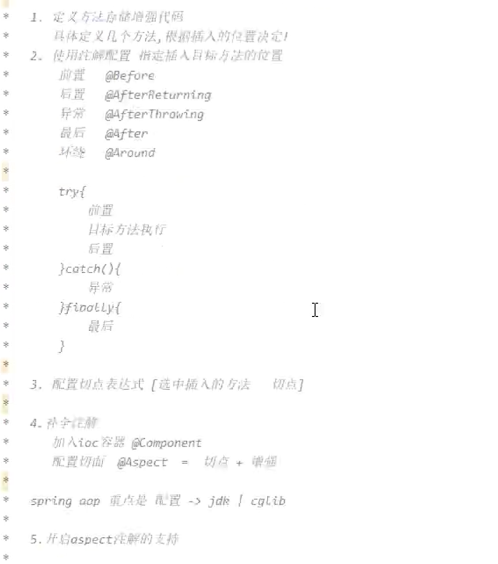 - 织入(Weaving):织入是将切面代码应用到目标对象的过程。织入可以在编译时、类加载时或运行时进行。