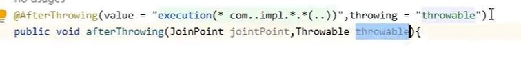 @AfterThrowing(value = "execution(* com..iml..(..))",throwing="形参")