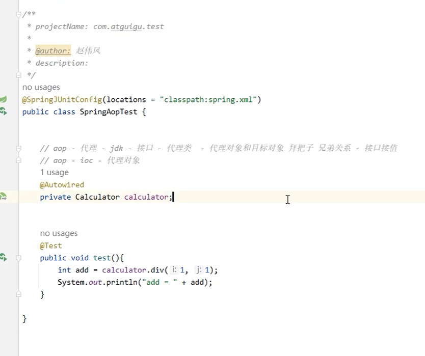 </beans>- **定义业务bean和切面bean**:将业务逻辑类和切面类作为bean定义在XML中。