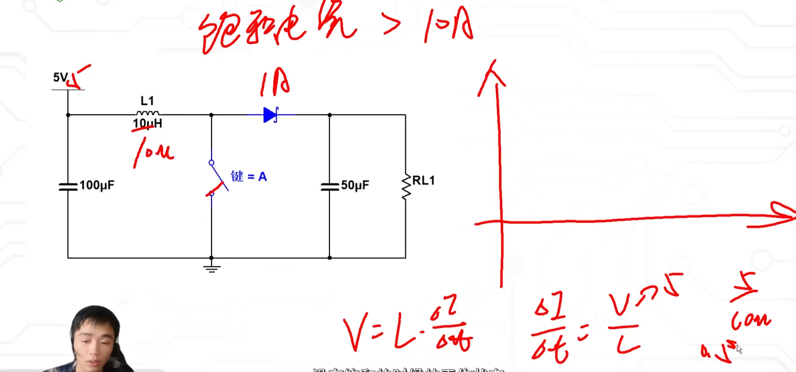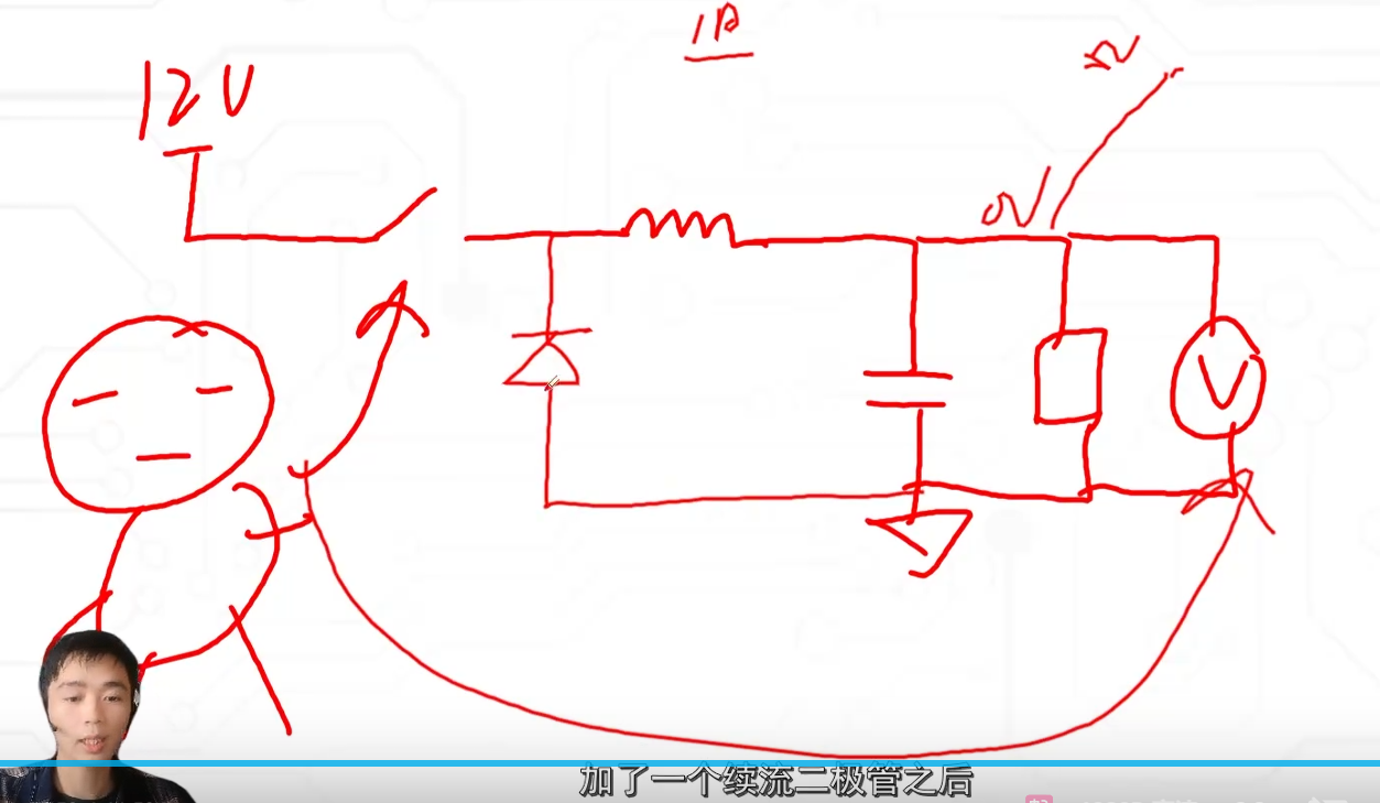但是是使用电感切断开关会产生高压,所以要加一个续流二极管