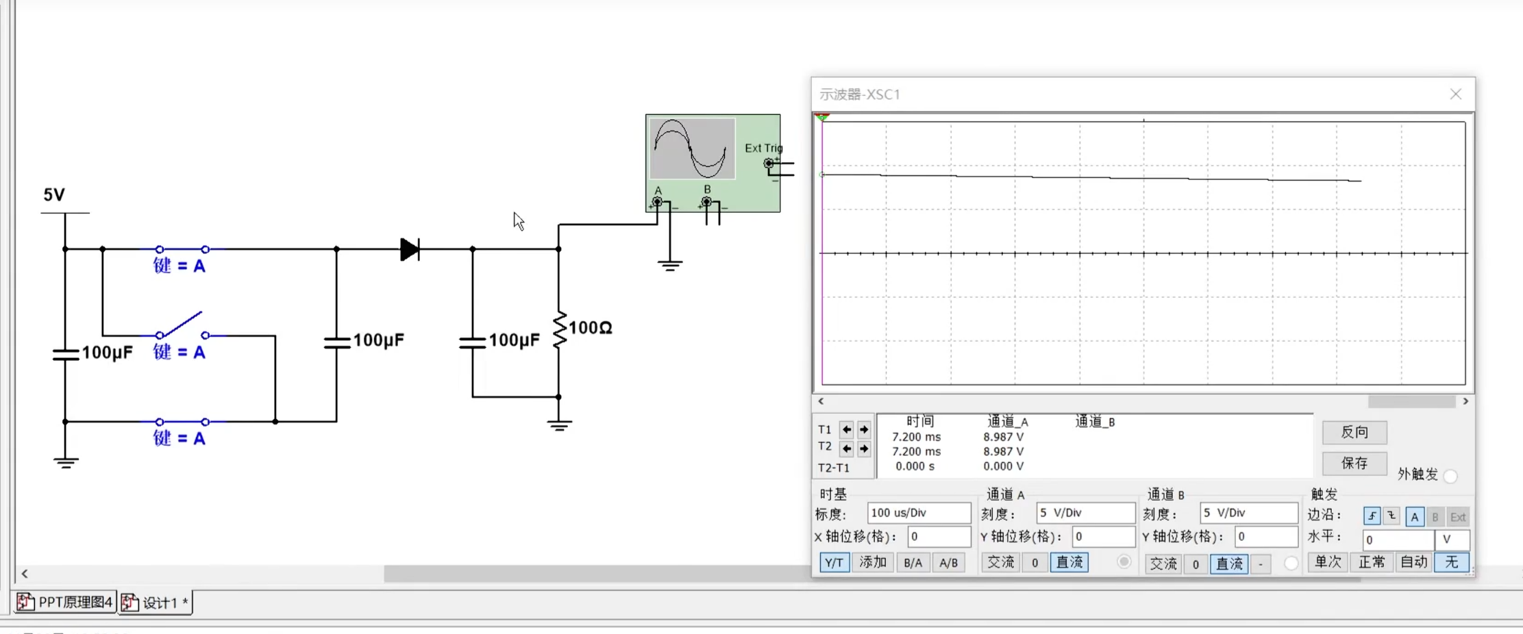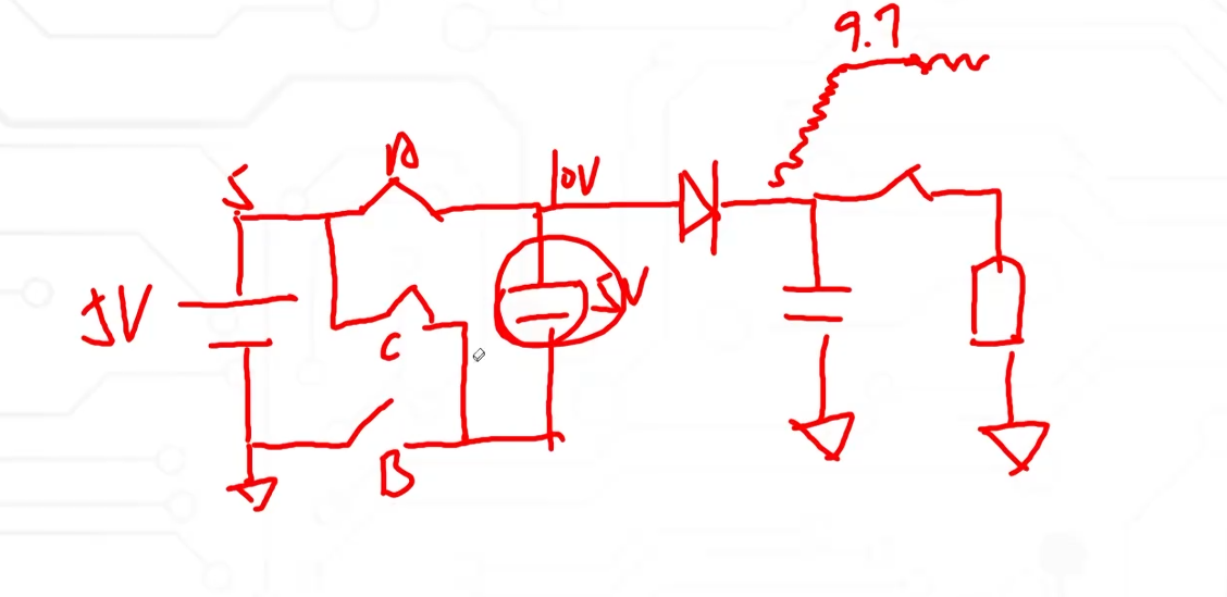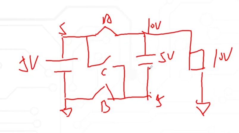 不断的使开关闭合断开,电容电压会一个个台阶升高